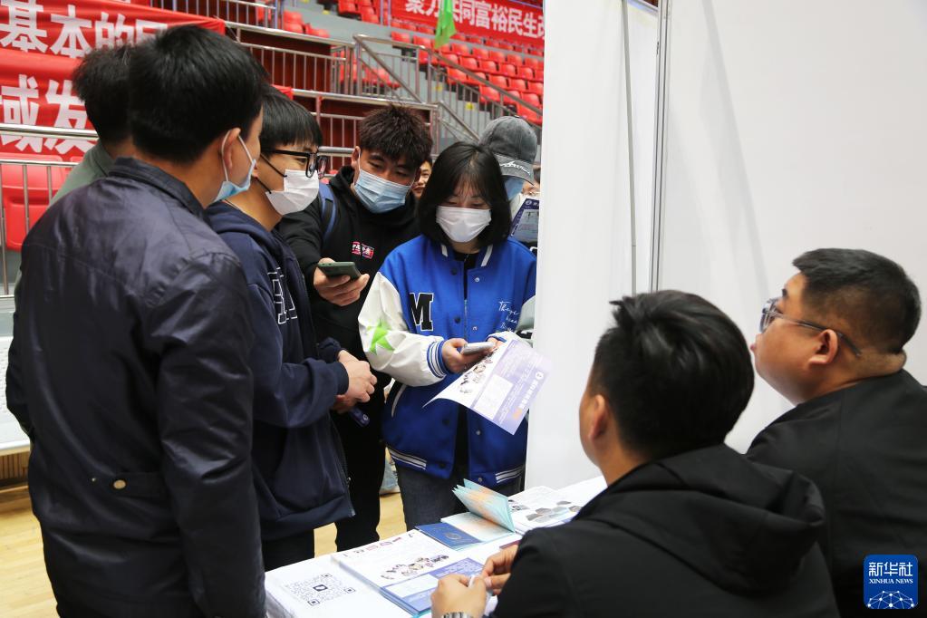 3月20日,求職者在招聘會(huì )上與用人單位工作人員溝通。