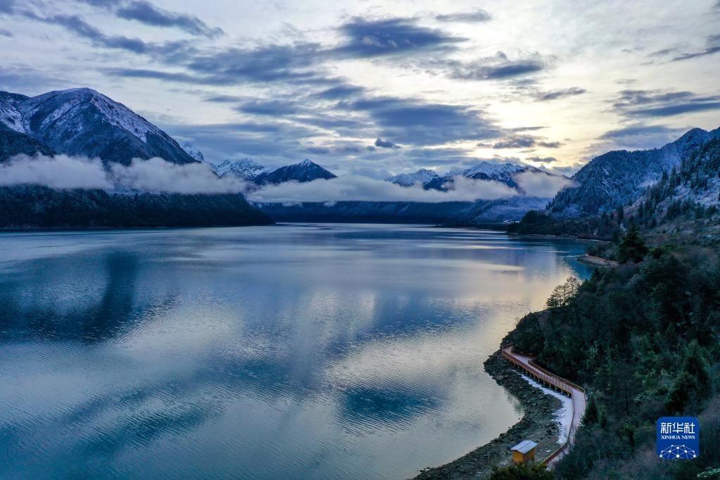 巴松湖位于西藏自治區林芝市工布江達縣,清澈的湖水在雪后銀色山林的掩映下格外美麗。