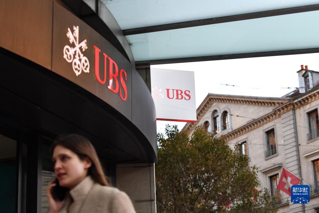 這是3月20日在瑞士日內瓦拍攝的瑞銀集團標識。