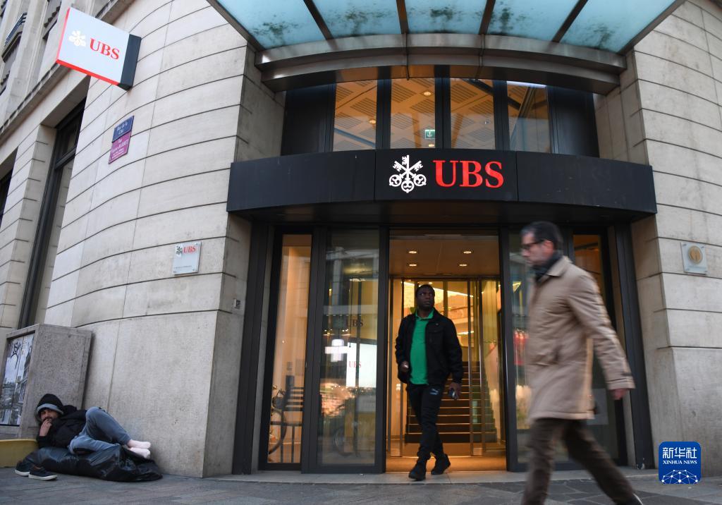 3月20日,在瑞士日內瓦,人們從瑞銀集團門(mén)前走過(guò)。