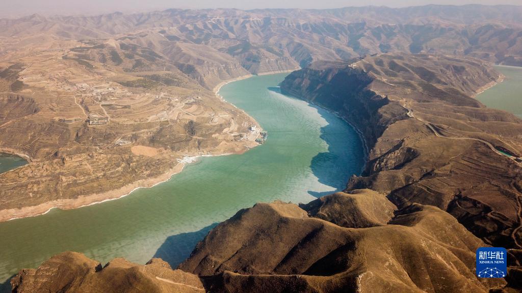 黃河老牛灣位于山西省和內蒙古交界處,我國黃土高原滄桑的地貌特征在這里彰顯。初春時(shí)節,黃河老牛灣段部分水面依然冰封,從空中俯瞰呈現出蒼茫雄渾的景象。