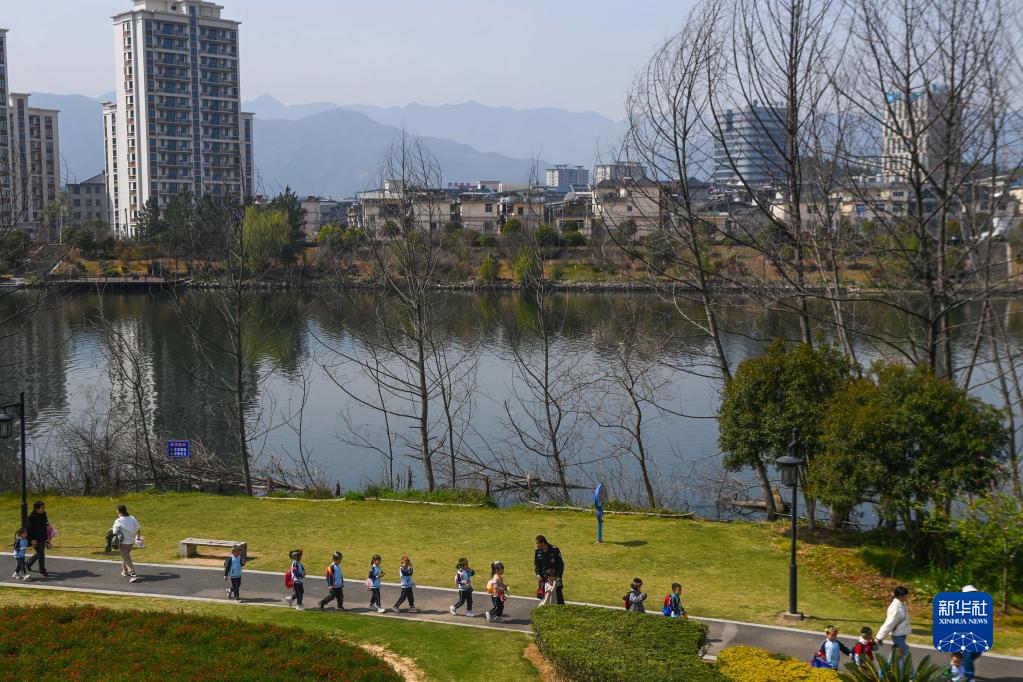 3月15日,小朋友們在浙江省麗水市松陽(yáng)縣松陰溪中的生態(tài)景觀(guān)生態(tài)灘健康主題公園內春游。清澈的江水環(huán)繞著(zhù)美麗的生態(tài)公園,成為了當地百姓健身休息的好去處。生態(tài)灘景觀(guān)工程位于松陰溪干流縣城松洲大橋下約200米處,整體呈條型,占地面積約3.7公頃。原為溪灘砂地,依托松陰溪的生態(tài)治理而成為了生態(tài)景觀(guān)生態(tài)灘健康主題公園。