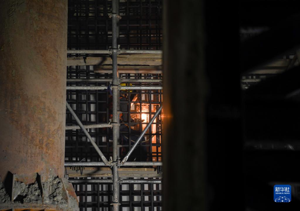 3月21日,在成都地鐵27號線(xiàn)金府站,中建三局的施工人員在進(jìn)行地下站房焊接作業(yè)。