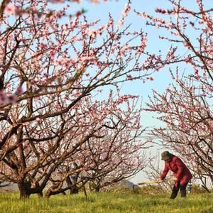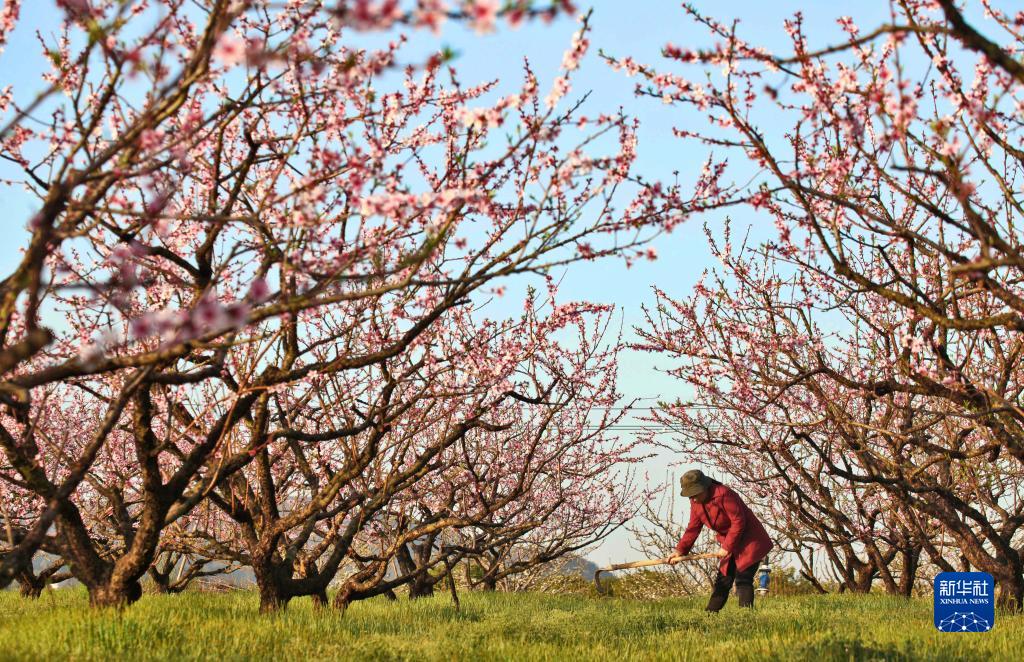 3月21日,江西省吉安市永豐縣佐龍鄉馬形坑村果農在桃園中開(kāi)溝,準備施肥。