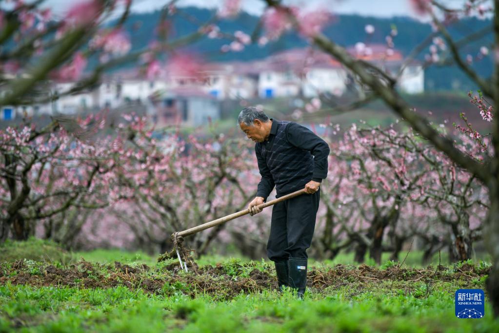 3月21日,農民在貴州省遵義市余慶縣白泥鎮明星社區田間勞作。