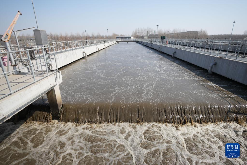 這是沈陽(yáng)南部污水處理廠(chǎng)生化池,生化池采用活性污泥處理工藝,通過(guò)微生物對有機物進(jìn)行降解,同時(shí)脫氮除磷(3月17日攝)。