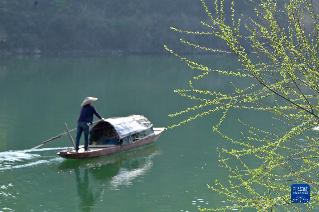 3月5日,在湖南省婁底市雙峰縣杏子鋪鎮江口村,河岸邊的柳樹(shù)吐出新芽。