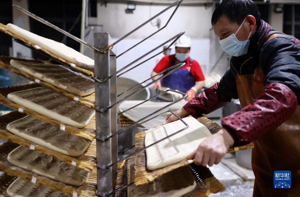 3月22日,石屏縣一家豆制品生產(chǎn)企業(yè)的工作人員在制作豆腐。