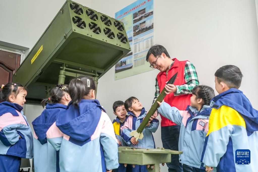 3月22日,在浙江省湖州市長(cháng)興國家氣象觀(guān)測站,龍山街道中心幼兒園的孩子在了解人工增雨設備。