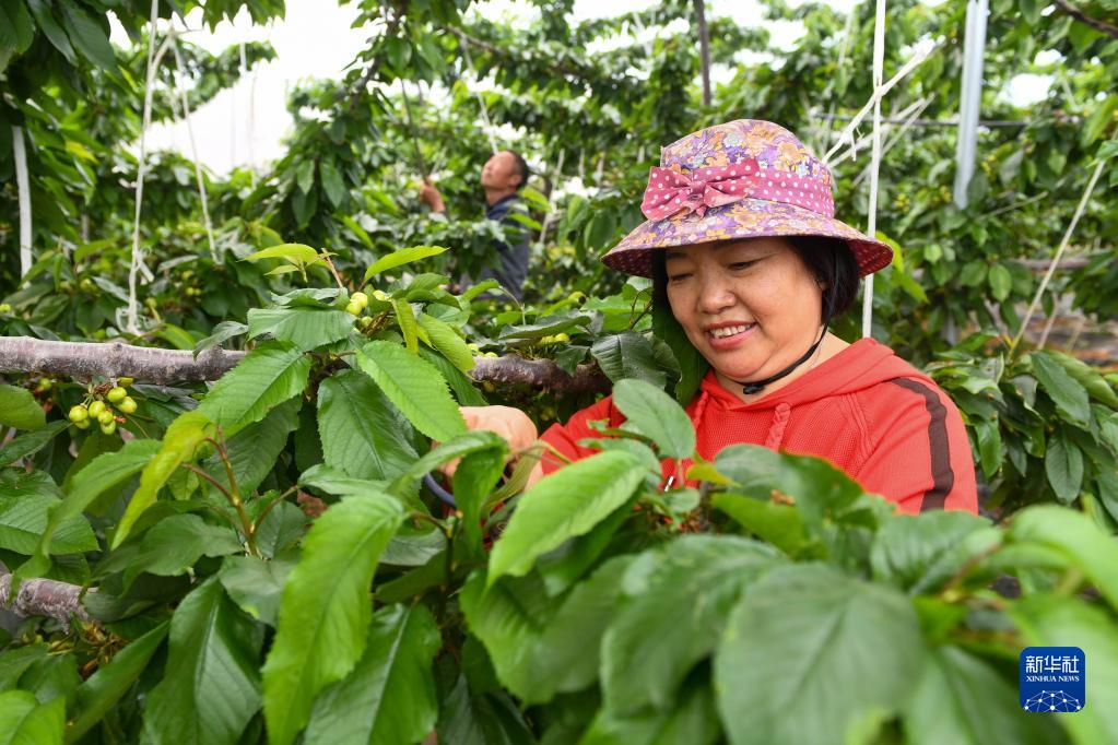 當下,山東省沂源縣燕崖鎮的300個(gè)大棚共計1000畝左右的大棚櫻桃陸續成熟上市,果農們搶抓農時(shí)進(jìn)行管護。