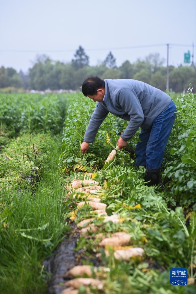 近日,在浙江省諸暨市姚江鎮國家級農業(yè)產(chǎn)業(yè)園,蔬菜基地里的蘿卜進(jìn)入春季豐收季,種植戶(hù)忙著(zhù)采摘、清洗、裝包,準備運往周邊縣市農貿批發(fā)市場(chǎng)。該基地是姚江鎮通過(guò)招引鄉賢回歸建立的項目,共占地100余畝,旨在拓寬當地農產(chǎn)品銷(xiāo)售渠道,帶動(dòng)周邊農戶(hù)增收。在蘿卜收獲結束后,這里將繼續栽種毛豆等農作物。