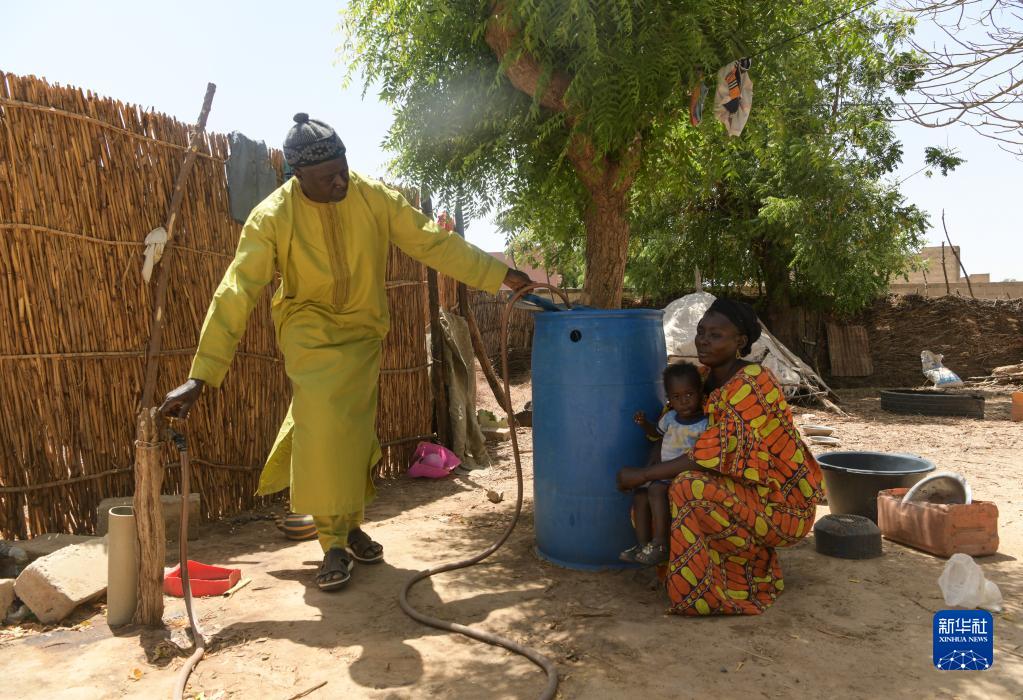 3月20日,在塞內加爾久爾貝勒區的泰內富勒村,馬馬杜·迪恩(左)在家中取水。
