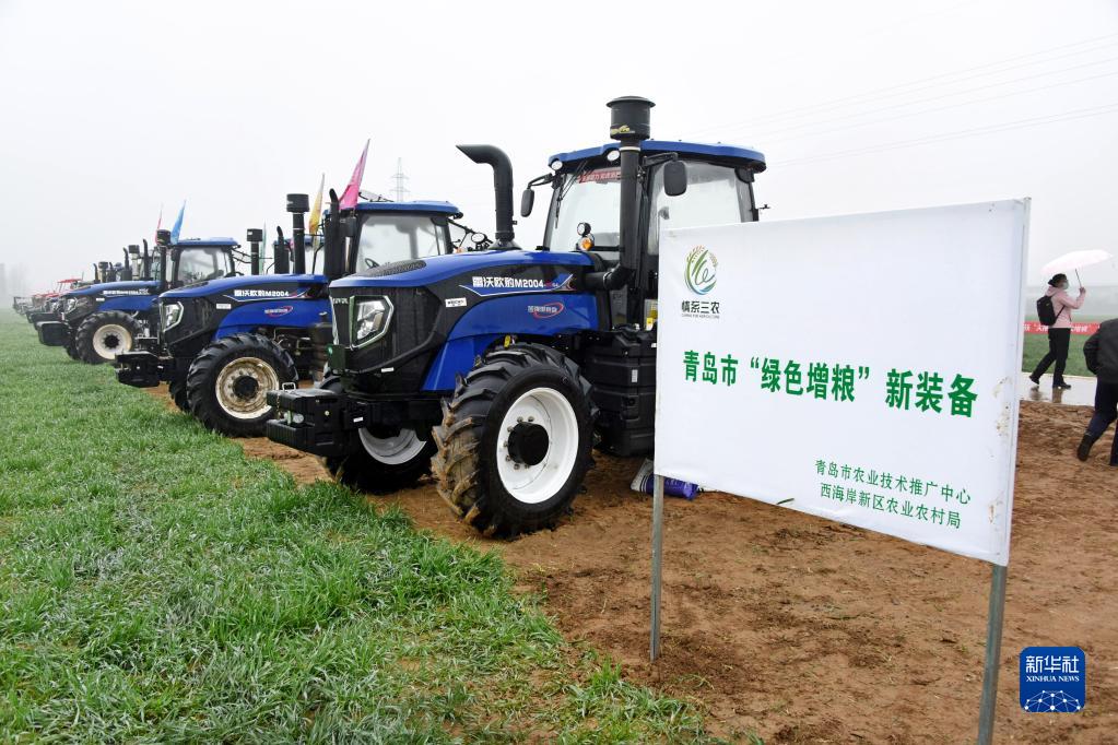 3月22日,青島市西海岸新區大場(chǎng)鎮小麥生產(chǎn)基地,“綠色增糧”新設備在進(jìn)行展示。