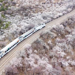 近日,北京居庸關(guān)長(cháng)城腳下山花漸次開(kāi)放。北京市郊鐵路S2線(xiàn)列車(chē)穿行于花海間,成為春日里一道美麗的風(fēng)景。