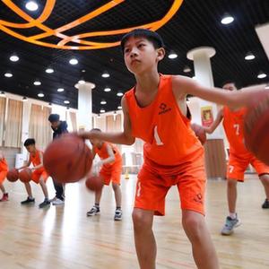 3月23日,青島市通濟實(shí)驗學(xué)校的學(xué)生在大課間進(jìn)行籃球運球訓練。