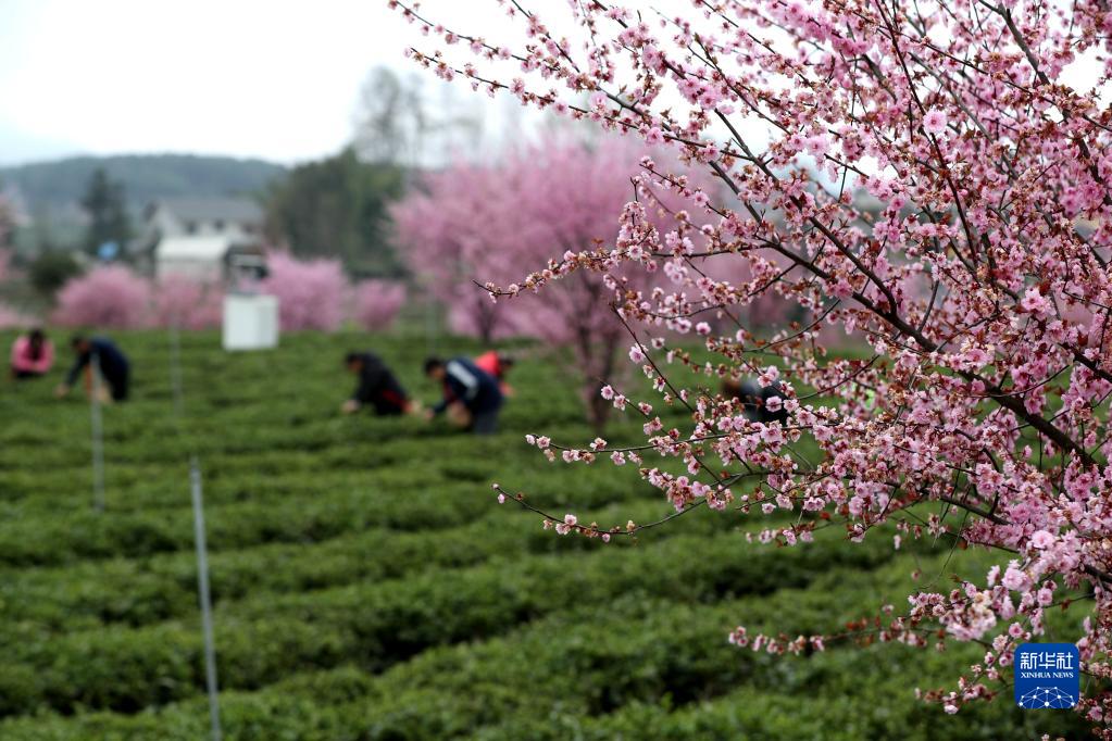 3月23日,村民在鳳岡縣永安鎮田壩社區生態(tài)茶園基地采摘春茶。
