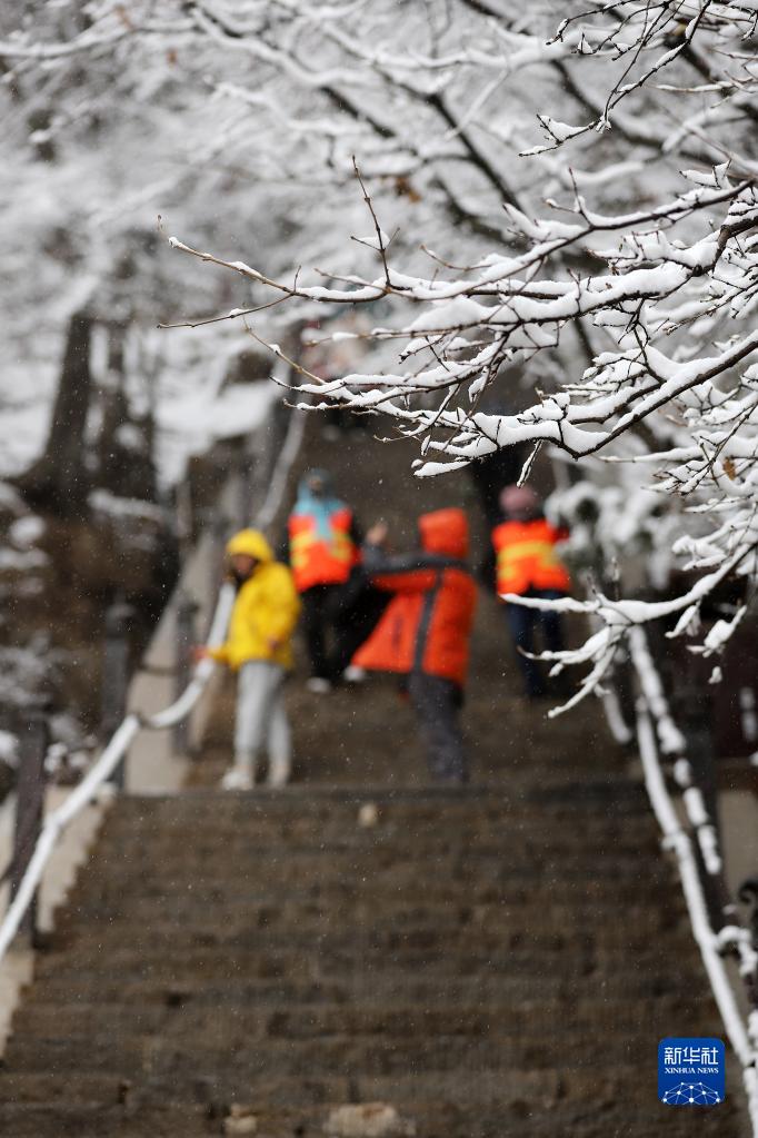 受冷空氣影響,位于甘肅省平?jīng)鍪械尼轻忌骄皡^迎來(lái)降雪,景色如畫(huà)。