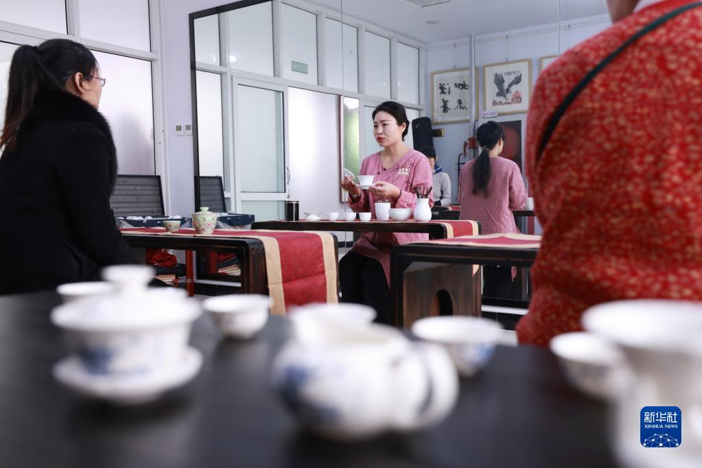 3月23日,群眾在內丘縣文化館學(xué)習茶藝。