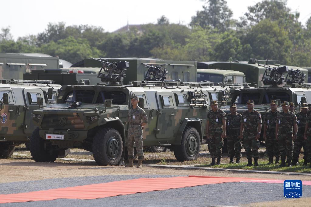 中柬“金龍-2023”聯(lián)演開(kāi)始儀式23日在柬埔寨王家軍某訓練基地舉行。中方帶隊領(lǐng)導、南部戰區陸軍副參謀長(cháng)陳敏田少將,柬埔寨王家軍副總司令兼陸軍司令洪瑪奈上將分別致辭。聯(lián)演雙方全體參演官兵、多國駐柬武官以及東南亞多國觀(guān)察員參加了儀式。新華社發(fā)(批隆攝)
