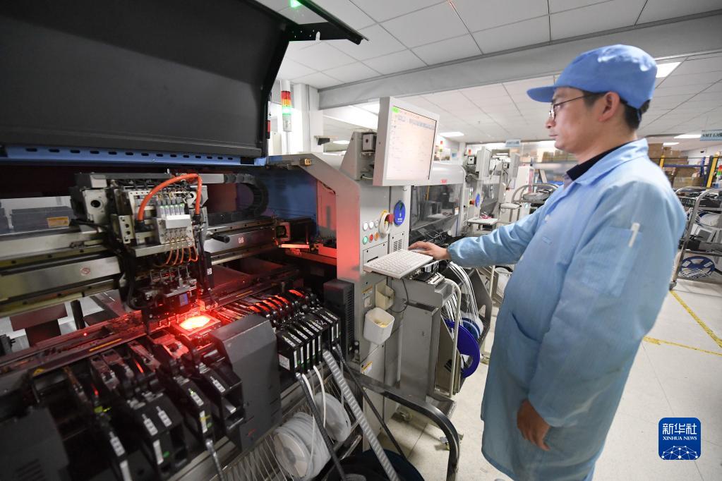 在位于衢州市的浙江合川科技股份有限公司,全自動(dòng)貼片機在生產(chǎn)伺服電機驅動(dòng)主板(3月21日攝)。