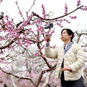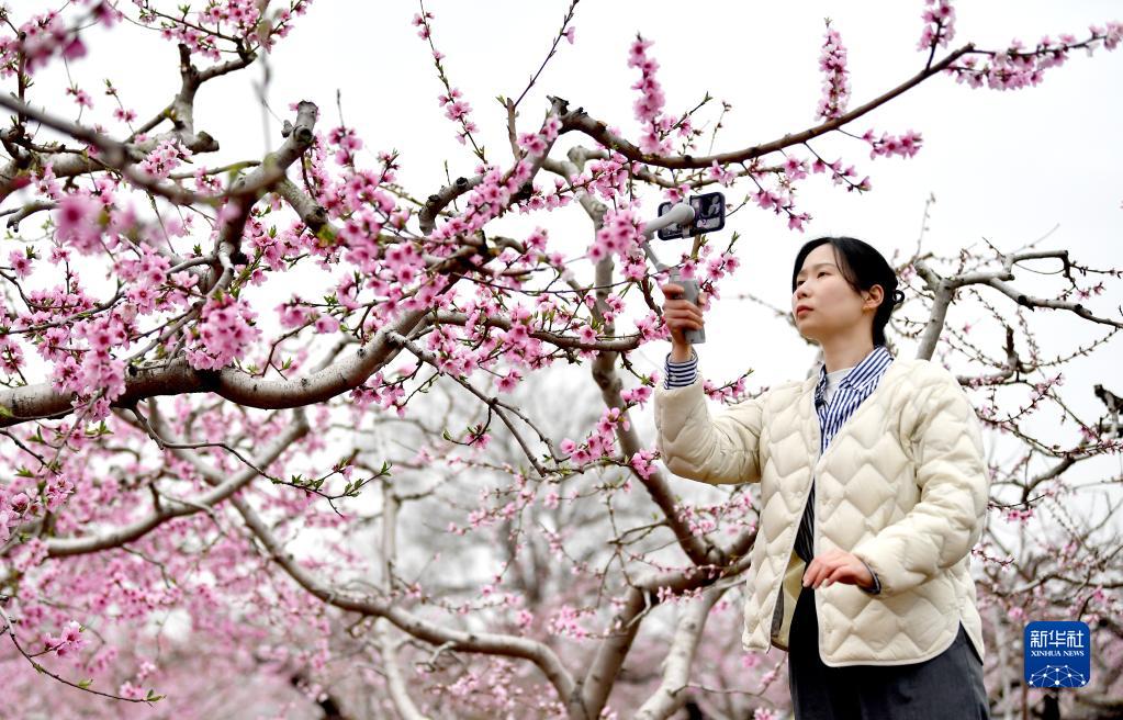 一場(chǎng)春雨過(guò)后,陜西省西安市臨潼區零口街道的桃花競相綻放,吸引游人賞花拍攝。