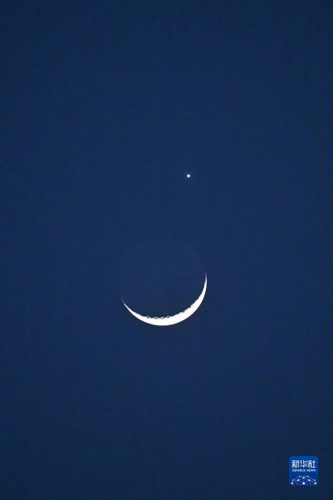 當晚,一輪彎彎的月牙與太陽(yáng)系最明亮的行星在天空上演一場(chǎng)奇妙的天象——月掩金星。