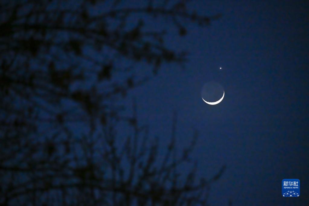 當晚,一輪彎彎的月牙與太陽(yáng)系最明亮的行星在天空上演一場(chǎng)奇妙的天象——月掩金星。