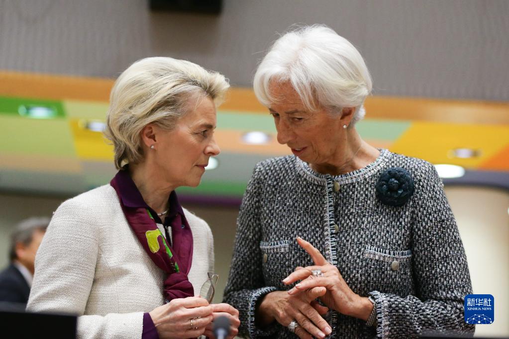 3月24日,在比利時(shí)布魯塞爾,歐盟委員會(huì )主席馮德萊恩(左)與歐洲央行行長(cháng)拉加德在歐盟春季峰會(huì )期間的歐元峰會(huì )開(kāi)始前交談。