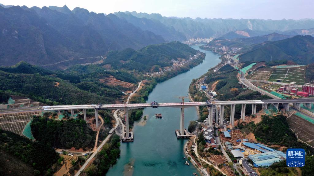 廣西最大跨徑雙向六車(chē)道高速公路連續剛構橋雙幅合龍