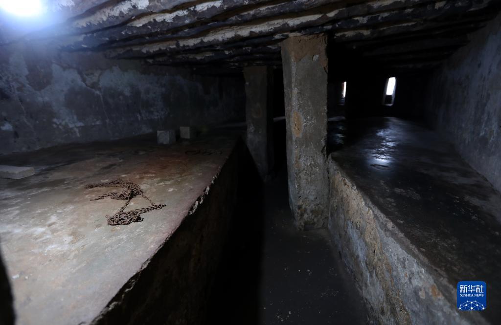 這是2月23日在坦桑尼亞桑給巴爾圣莫尼克博物館拍攝的曾用于關(guān)押奴隸的地下室。