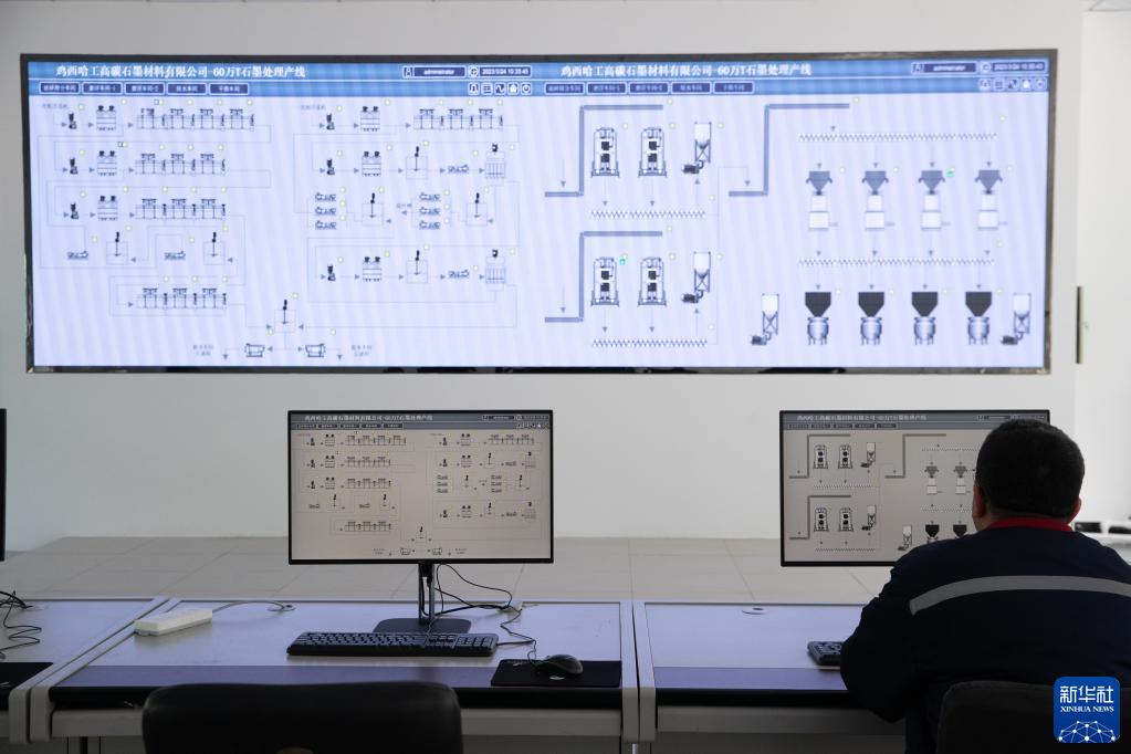 3月24日,在雞西哈工高碳石墨材料有限公司自動(dòng)化運維中心,工人在監測作業(yè)情況。