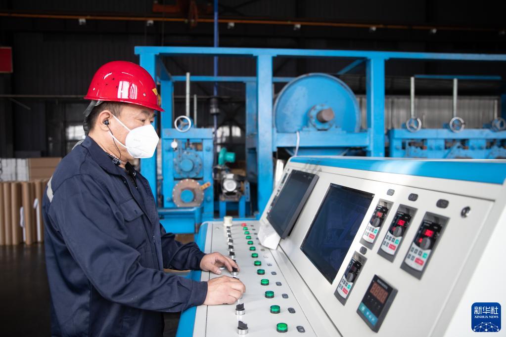 3月24日,在雞西哈工碳基材料科技有限公司柔性石墨紙生產(chǎn)車(chē)間,工人在進(jìn)行作業(yè)。