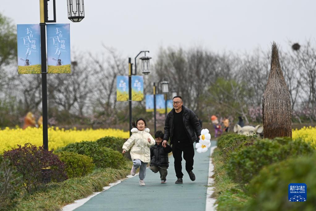 3月25日,游客在八里店鎮移沿山生態(tài)景區的油菜花海內游玩。