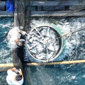 3月24日,日本籍漁船在萬(wàn)寧大洲島水域裝運章雄魚(yú)苗。