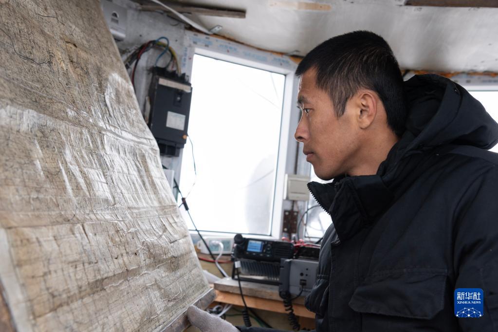 3月23日,在彩芹瞭望塔塔頂的瞭望室內,王劉洋在查看地圖。