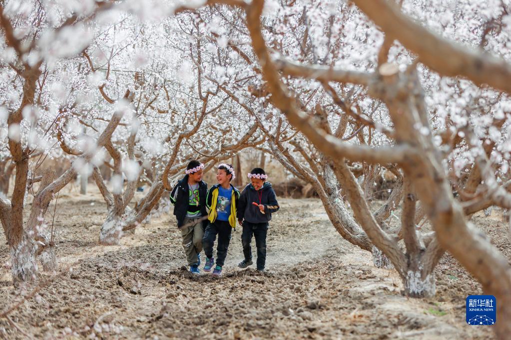 3月18日,小朋友在“新疆第一春·花開(kāi)吐魯番”2023吐魯番杏花節現場(chǎng)游玩。