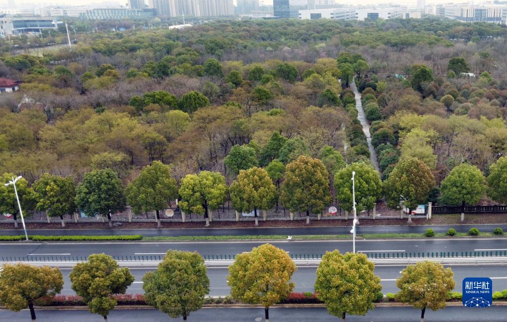 松江新城綠環(huán)建設區域內綠樹(shù)成蔭(3月21日攝,無(wú)人機照片)。