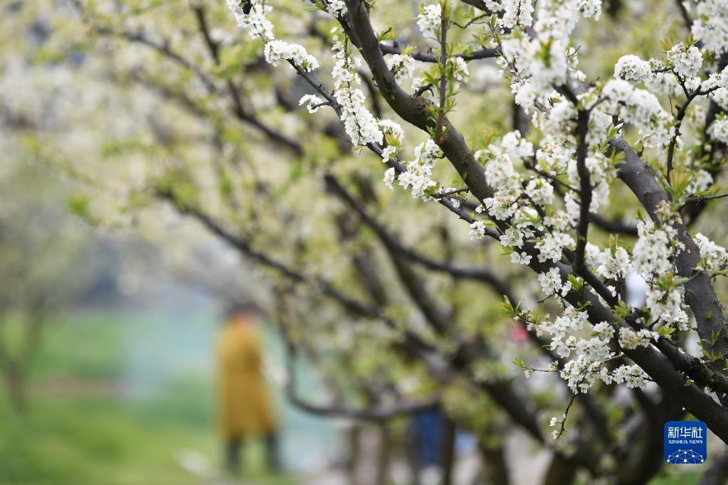 3月25日,游客在貴州省遵義市余慶縣白泥鎮哨溪村李子園里游玩。