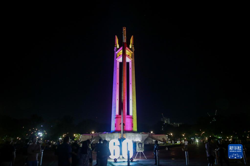 這是3月25日拍攝的菲律賓奎松市的地標建筑奎松紀念碑在“地球一小時(shí)”開(kāi)始前的照片。