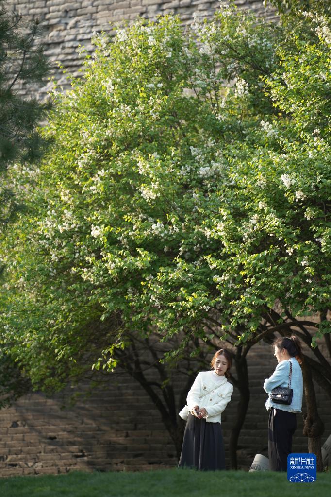 近日,陜西西安明城墻旁春意漸濃,吸引不少市民游客前來(lái)踏青。