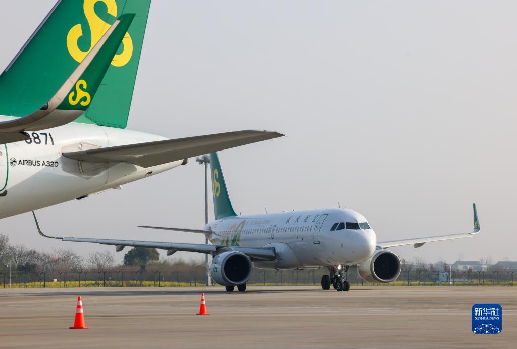 3月26日,飛機在江蘇揚州泰州國際機場(chǎng)準備出港。
