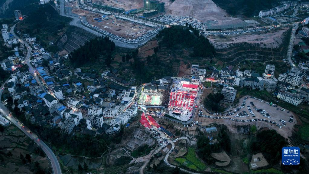 這是“村BA”比賽開(kāi)始前的臺盤(pán)村全景(3月26日攝,無(wú)人機照片)。