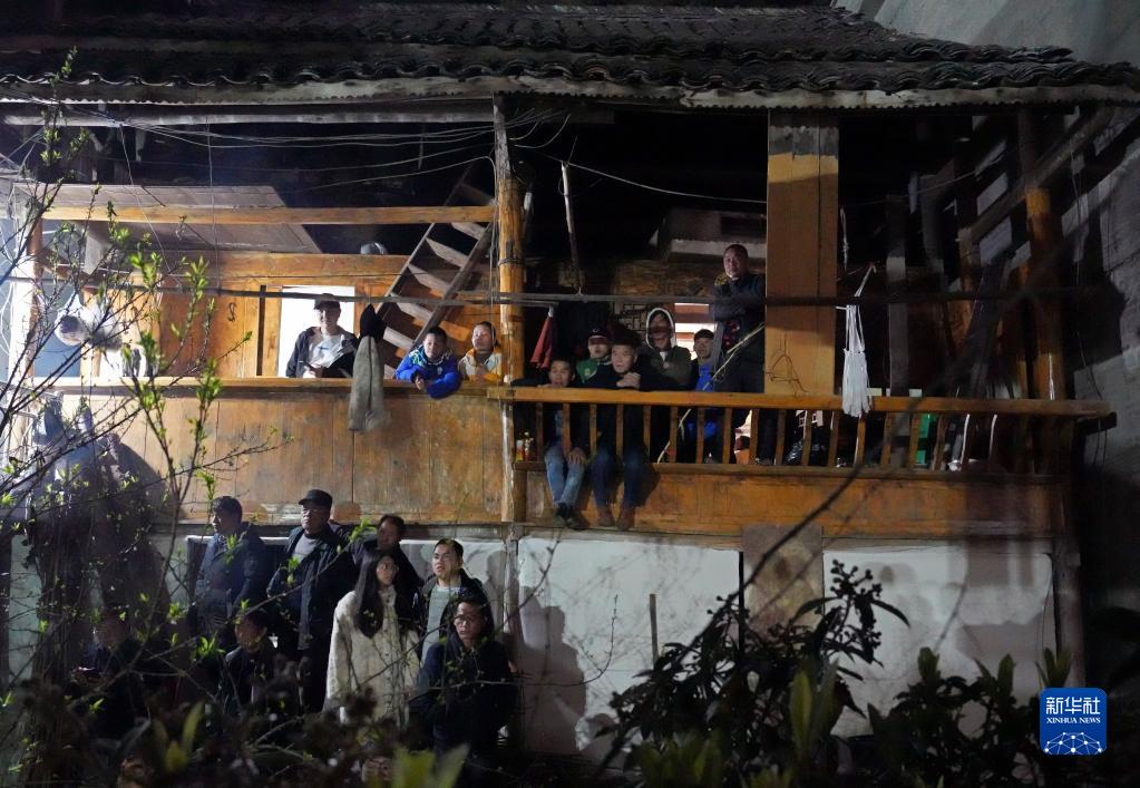 3月26日,“村BA”總決賽賽場(chǎng)外,當地觀(guān)眾在居民樓上觀(guān)看比賽。