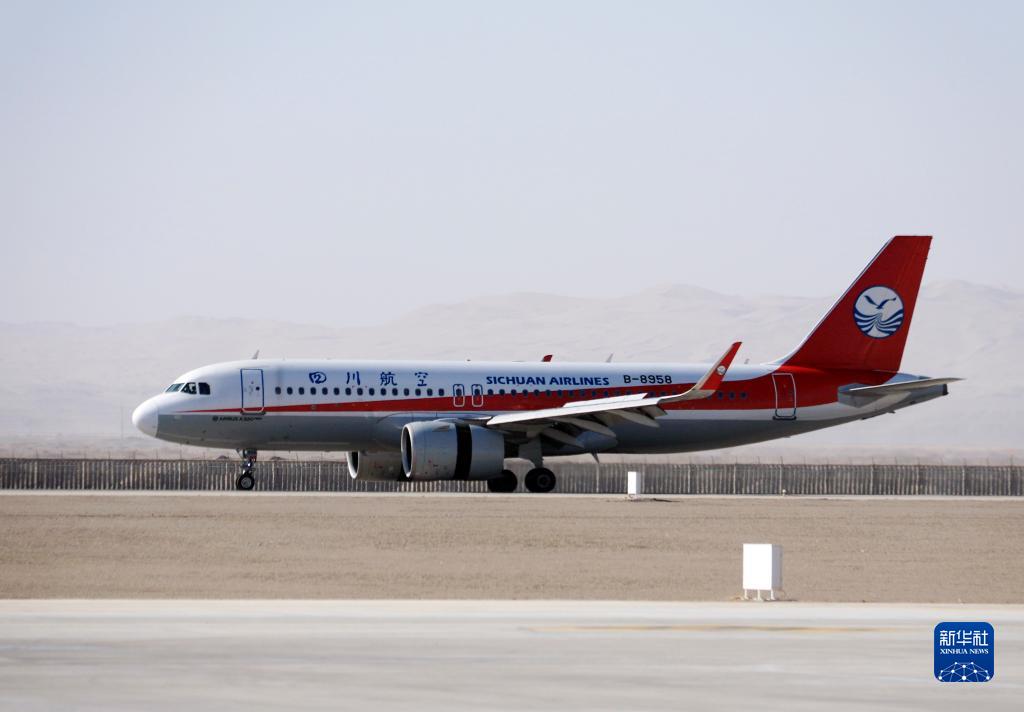 3月26日,由四川航空公司執飛的成都至敦煌往返直達航線(xiàn)正式通航。這是首航航班降落在甘肅敦煌莫高國際機場(chǎng)。