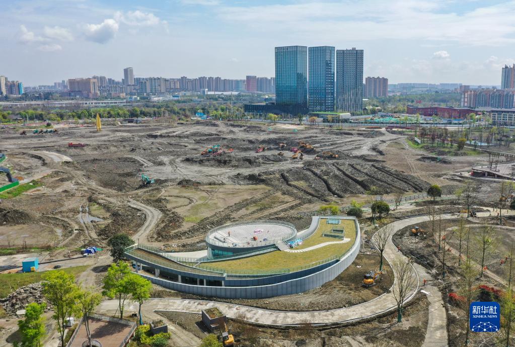 這是3月27日在四川省成都市郫都區拍攝的世界科幻公園建設現場(chǎng)(無(wú)人機照片)。