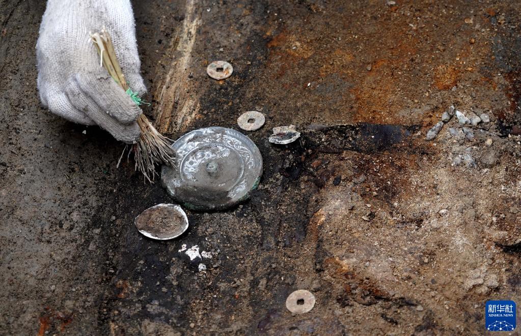工作人員在宋國故城遺址內的唐代墓葬進(jìn)行清理作業(yè)(3月25日攝)。新華社記者 李安 攝