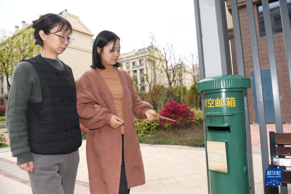 3月29日,在環(huán)渚街道香樟灣社區,居民將對逝去親人的思念寫(xiě)成信投入時(shí)空郵箱中。
