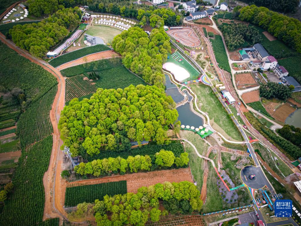 這是3月29日拍攝的諸暨市楓橋鎮陽(yáng)春村陽(yáng)春山月游樂(lè )度假村(無(wú)人機照片)。當地通過(guò)閑置荒山土地流轉發(fā)展鄉村旅游,幫助當地村民和村集體增收。