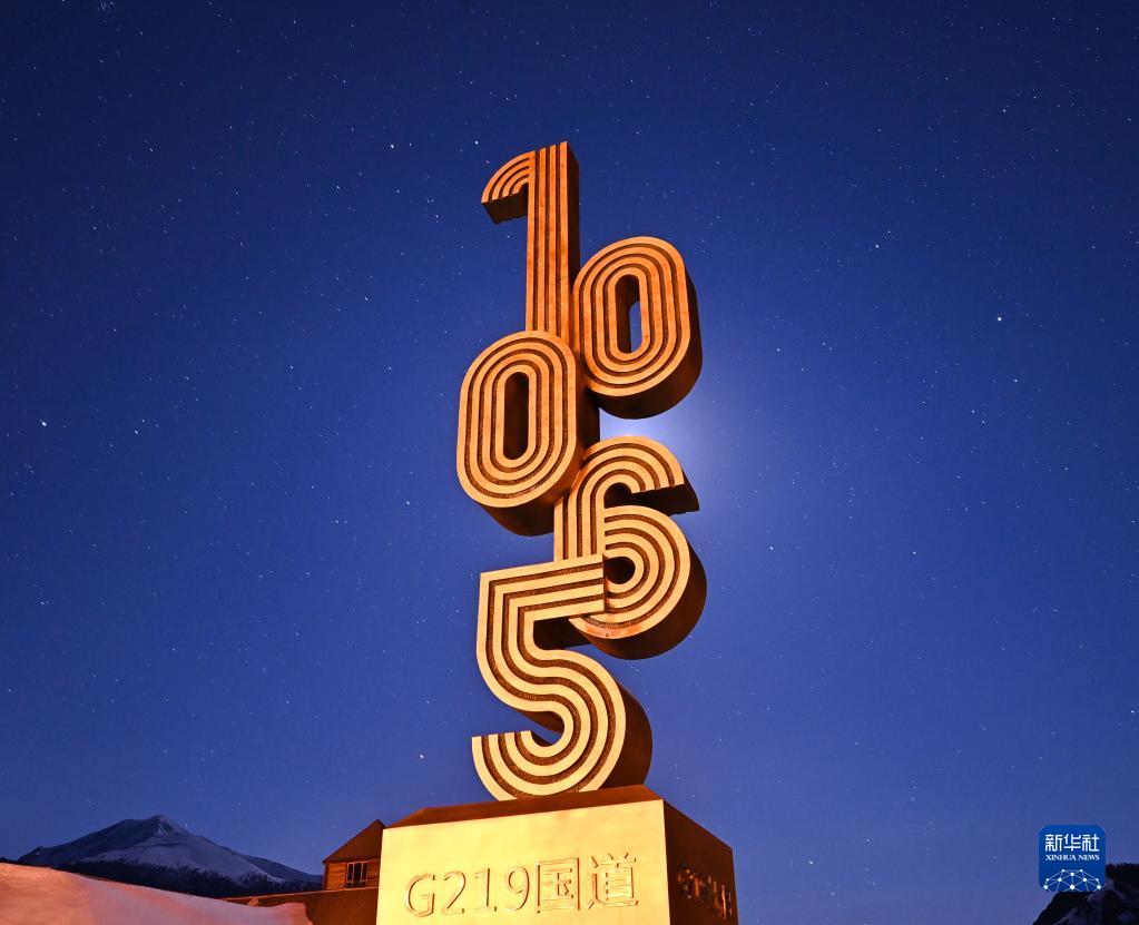 3月29日凌晨時(shí)分拍攝的G219國道0公里紀念碑。