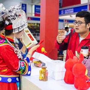 3月29日,在湖南國際會(huì )展中心,一名女子通過(guò)直播推銷(xiāo)商品。
